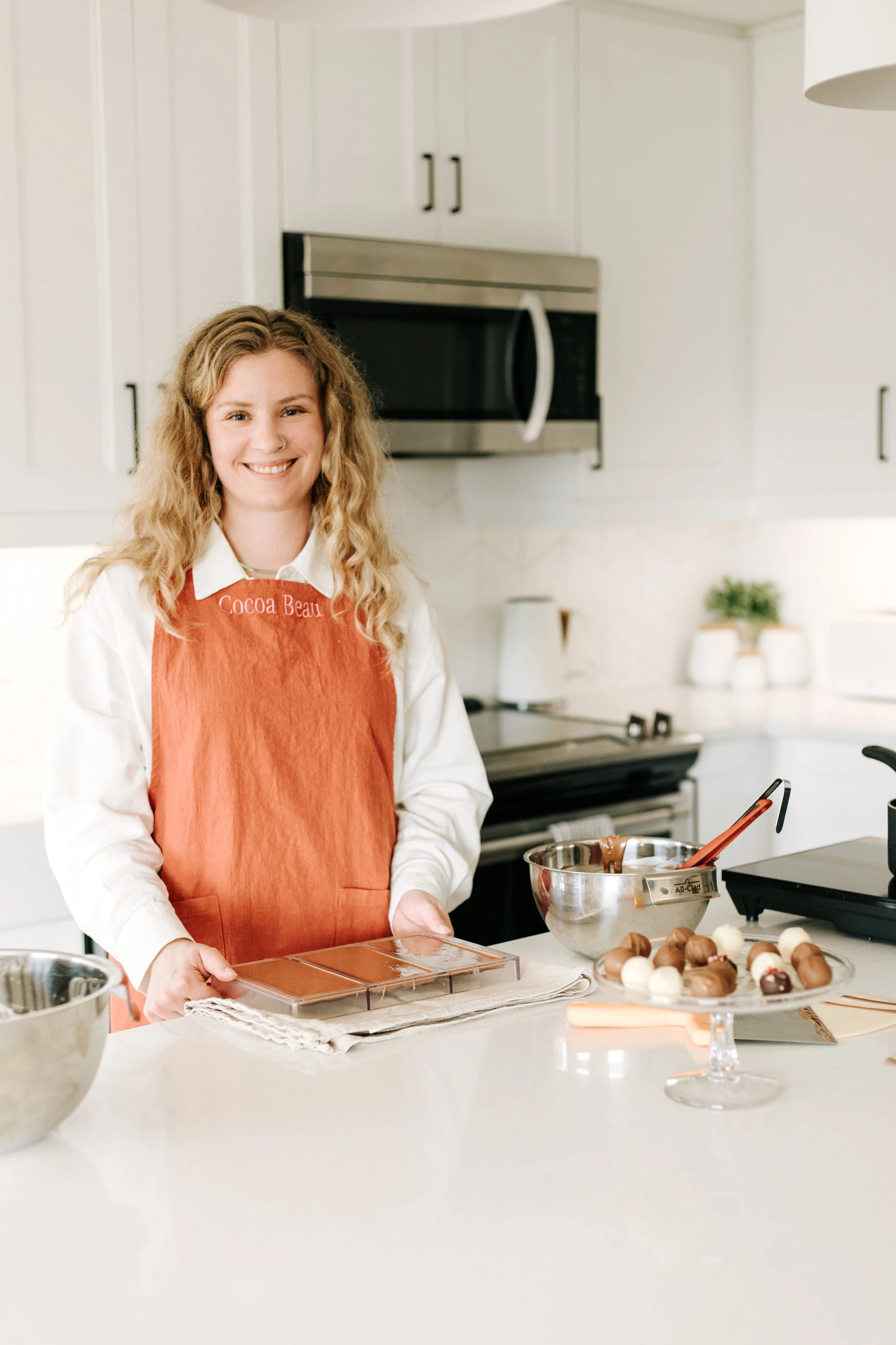 Hi, I’m Emily – the founder and fearless chocolatier behind Cocoa Beau. I’ve always loved a little something sweet, and while I was studying at Le Cordon Bleu in Ottawa, I landed a tasty job at a local chocolate and bake shop.